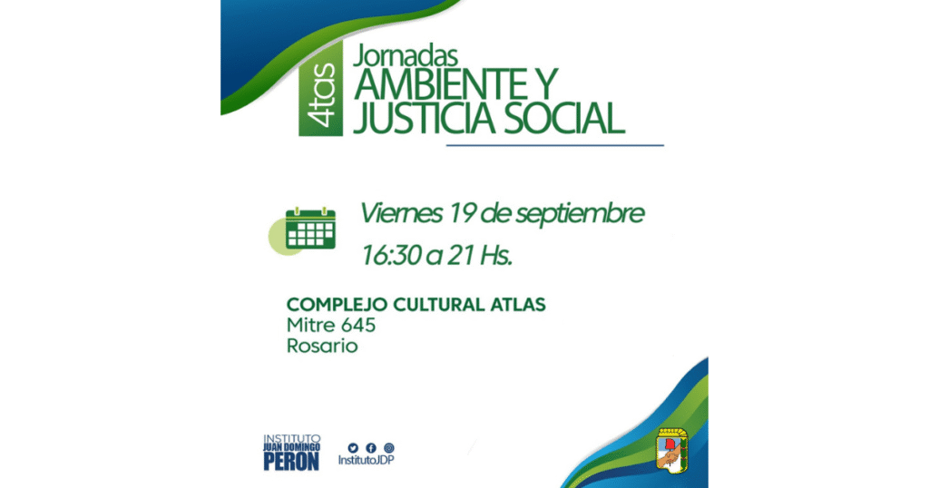 En este criterio, nos proponemos realizar las CUARTAS JORNADAS “AMBIENTE Y JUSTICIA SOCIAL” el día 19 de septiembre de 2025 en el Complejo Cultural Atlas (Mitre 645 Rosario) de 16:30 a 21 hs.